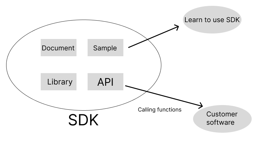 API 通常是一个函数,有特定的功能;SDK 是一个有很多功能函数的集合体,更像一个工具包。例如: SDK 里放着各种功能的软件包,API 是 SDK 对外的接口,用户想调用哪个功能只需要在提供的 API 传入规定的参数即可实现对应 SDK 里的功能。比如要做加法,就调用SDK的加法API,要做减法就调用减法API,无论想完成什么计算,SDK里总有能实现的方法。