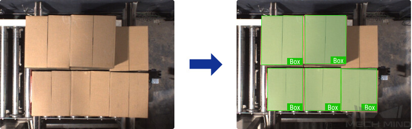 术语解释: 超级模型包,即梅卡曼德提供的通用模型,用于识别纸箱或麻袋。如果识别效果欠佳,可使用 Mech-DLK 对模型进行微调。